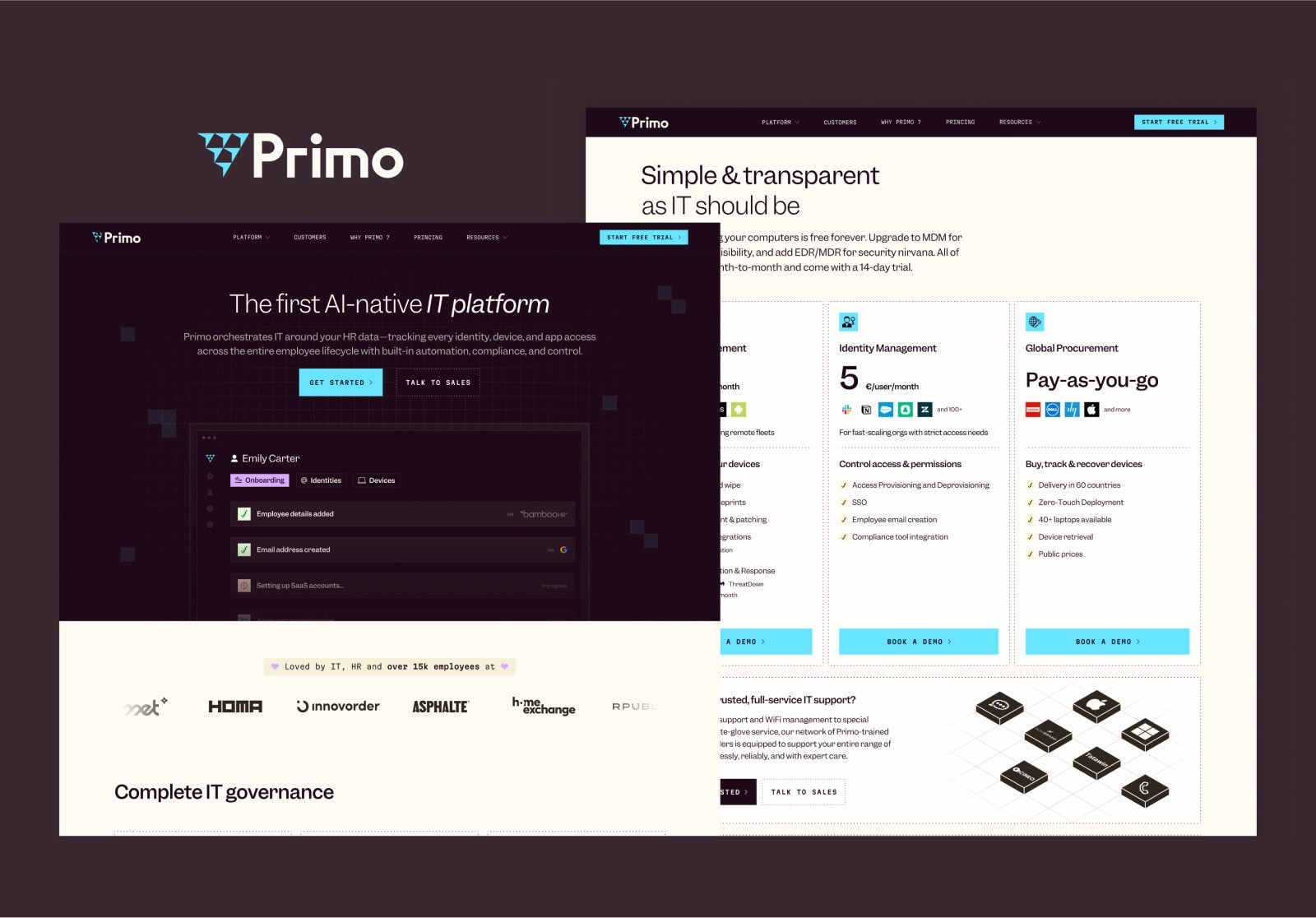 Primo is the first AI‑powered all‑in‑one IT platform that helps companies buy, track, manage, and secure devices seamlessly. By orchestrating identity, MDM, procurement, and EDR—powered by HR data and automation—Primo consolidates multiple workflows into one end‑to‑end solution. It offers security, compliance, zero‑touch deployment, and rapid scaling for modern, distributed teams.